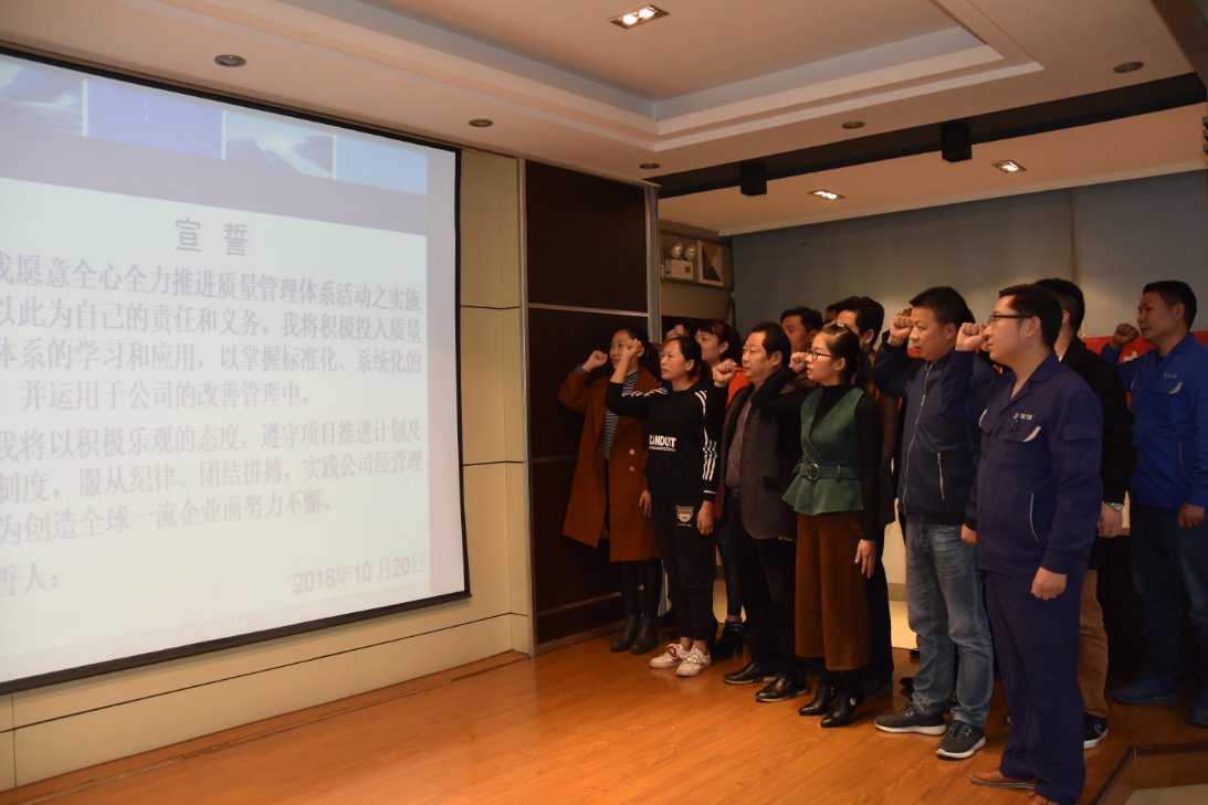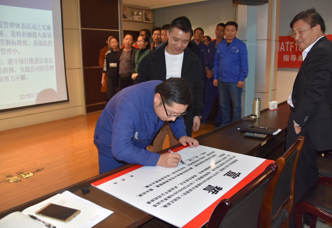 會上,質量管理體系推進小組成員進行了集體宣誓并現場簽名,充分展示了開展《質量管理體系提升》項目工作的決心。相信在公司上下一心、積極努力下,湖北佳恒科技股份有限公司一定能真正實現質量管理體系提升,將IATF16949:2016質量管理體系在企業內部有效運行,為企業持續健康發展保駕護航!